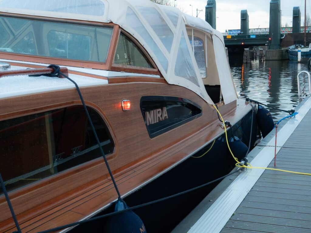When you step aboard the Mira today, it’s hard to imagine the state she was once in. Built in 1953 for the American export market, she was a proud symbol of Dutch craftsmanship. Only one of her kind remained in the Netherlands and that very boat was found decades later in a dusty shed, weathered, forgotten, and almost beyond saving.