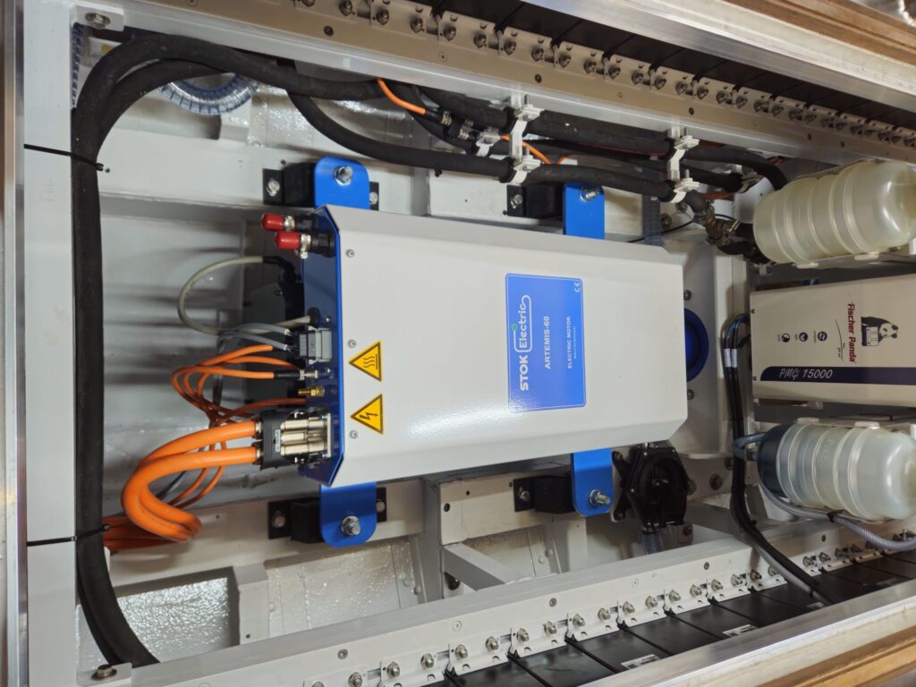 One very concrete challenge we faced was electromagnetic compatibility (EMC). With higher voltages, the risk of electromagnetic interference increases. This can cause disruptions in navigation equipment, communication systems, or even other onboard electronics. To deal with this, we had to carefully design cable routing, use shielding where needed, and integrate an EMC filter into the system.